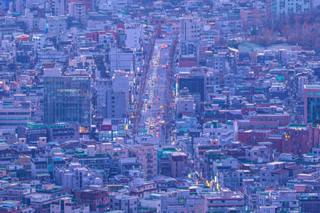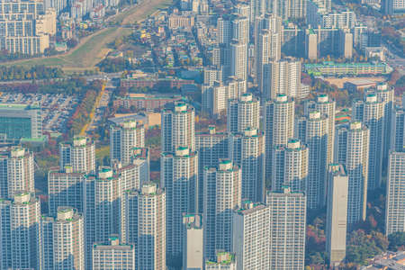 Seoul, South Korea-27 APR 2019: aerial view of Seoul City skyline at late evening