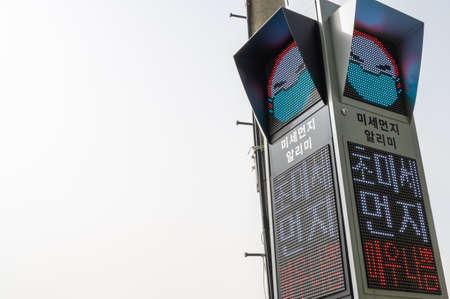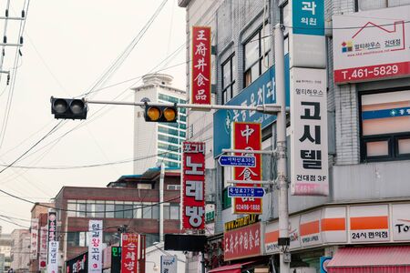 Busan, South Korea, September 13, 2019: cityscape with banners and traffic on the roads on sunny day