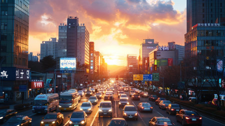Sunset city view of Seoul Suitable for a futuristic o night view for a modern city