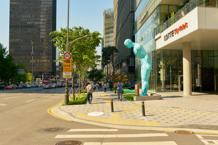 Bronze statue of Gangnam Style famous kpop song by Psy in front of the COEX mall in Seoul South Korea on 24 October 2021