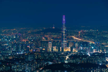 SEOUL, KOREA - MARCH, 2019: Evening view of Songpa-gu district and lights of food street