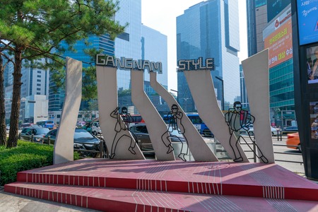 Seoul, South Korea - Jul 21, 2018 : Gangnam Style Horse Dancing Stage near Gangnam subway station in Seoul city