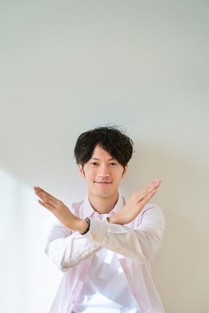 Generative AI : Candid of young attractive asian man close eyes deep breath and wide open arms in blue sky view background feeling wind and sunshine Happy asian hipster male in you