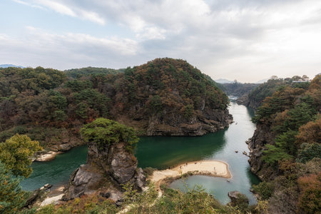 Goseokbawi Rock along Hantangang River taken during autumn season. Famous tourist attraction in Cheorwon, South Korea