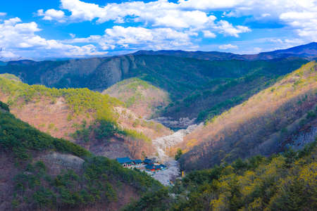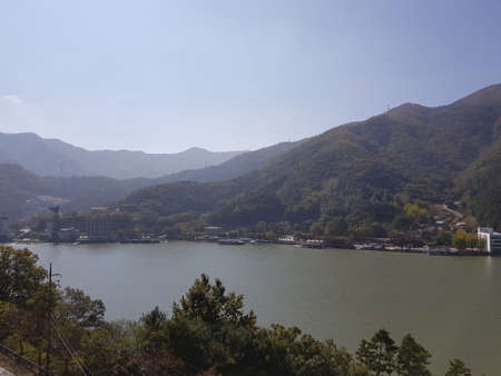 Beautiful view of the mountains and the river in South Korea.