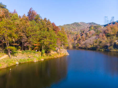 the scenery of the autumnal-colored reservoir