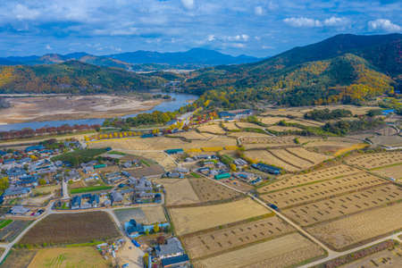 Aerial view of Yangdong Folk Village in Republic of Korea