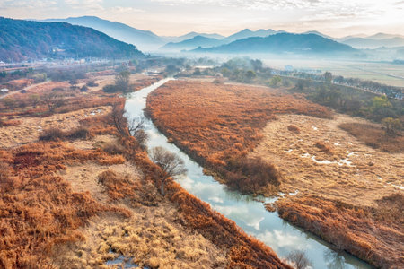 Autumn landscape with beautiful Jusanj in South Korea