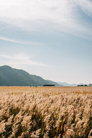 Suncheonman Bay wetland reed field at autumn in Suncheon, Korea