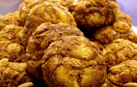 Fried Pineapple Fritters Caramelized with Cinnamon and Sesame Seeds. Traditional Dessert.