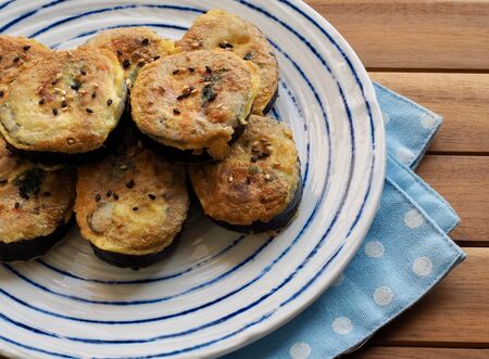 Aloo bonda in a plate on a wooden background with artistic lighting
