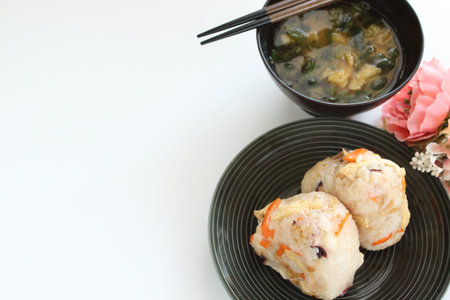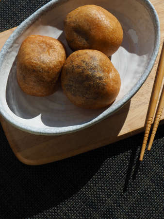 Japanese food, chicken and mushroom simmered rice ball