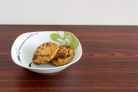 Steamed fish or chicken cutlets or meatballs with salt and spices. Fish cutlets made of chopped salmon