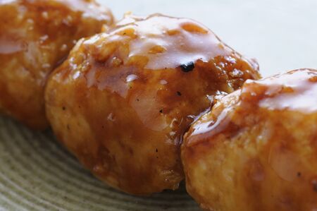 Up of meatball of yakitori on the dish