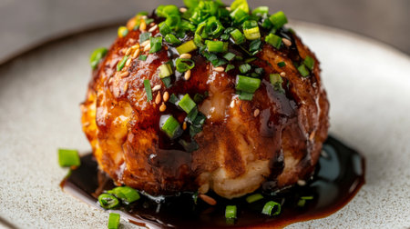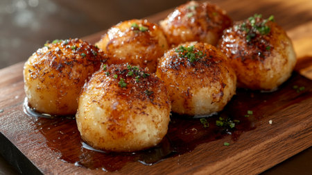 Captivating image of grilled rice balls topped with a savory glaze and herbs, highlighting textures and flavors. Perfect for food enthusiasts and culinary projects.