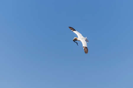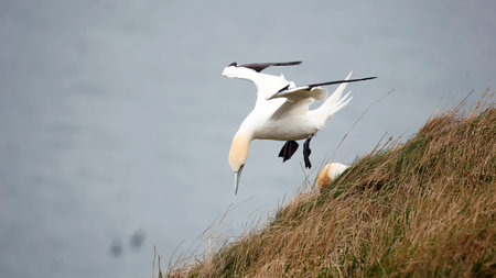 Wild bird in the wild Morus bassanus - Northern Gannet on the island of Heligoland on the North Sea in Germany.