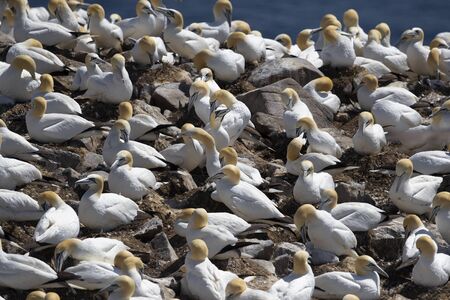 Colony of gannets gathered for breeding season at Muriwai, New Zealand