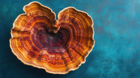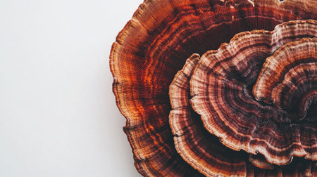 This artistic image features a large reishi mushroom, showcasing its intricate textures and vibrant colors against a clean background. Perfect for nature and health themes.