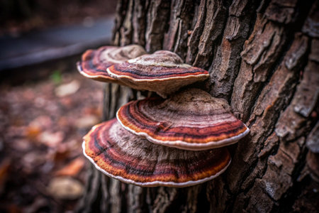 Exploring the vibrant textures of bracket fungus in a forest environment