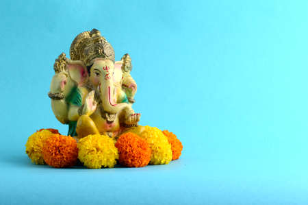 Hindu God Ganesha. Ganesha Idol on Blue Background