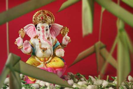 Hindu God Ganesha with jasmine flowers