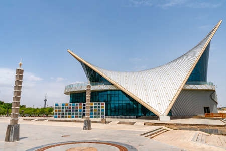 Kashgar Donghu Park Urban Planning Exhibition Center Building with Picturesque Blue Sky Background