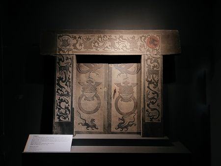 OCT 24, 2019 Bangkok, Thailand - Qin Shi Huang Emperor tomb stone gate. Famous part from Terracotta Army museum in Xian, China was exhibited in Bangkok at National museum
