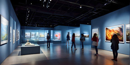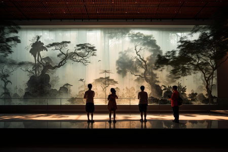 Captivating Encounter: Four Silhouettes Engrossed in Art at Sichuan Art Museum in Chengdu, China