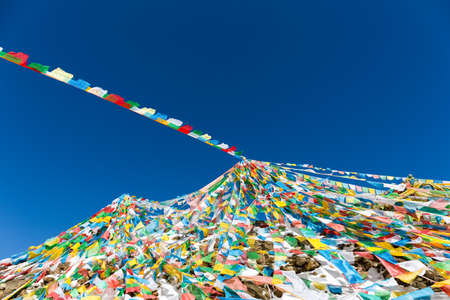 View of colorful buddhist prayer flags in Tibet