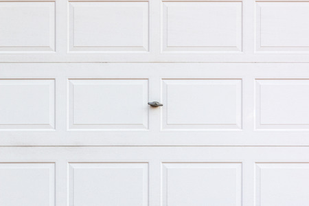 White wooden garage door with small lock.