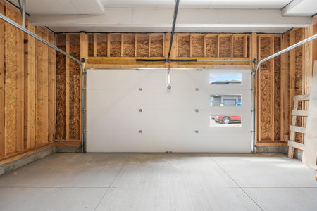 clean and empty garage, ready for a car to park inside, created with generative ai