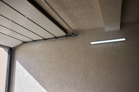 automatic garage door opener electric engine gear mounted on ceiling. close up