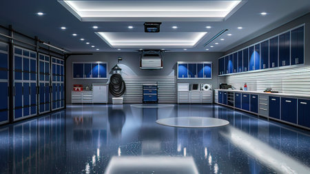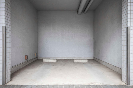 Vertical crop Empty garage interior with automatic motor interior