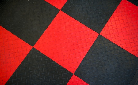 Black and red non-slip rubber mat with herringbone pattern arranged as a checker board.