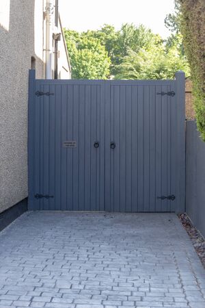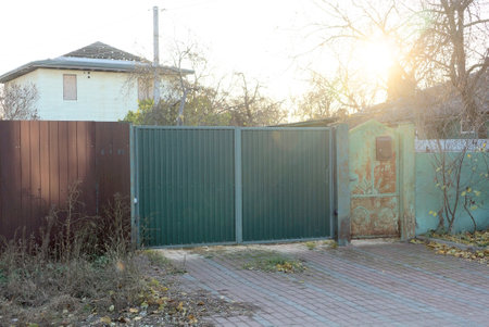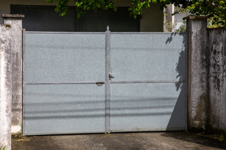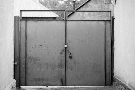 raw raw gray panel vintage steel metal gate house portal door of suburb access home