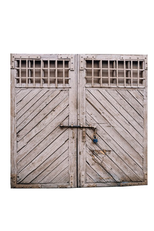 Old barn gate isolate. Wooden rustic gate for a warehouse, stable or barn