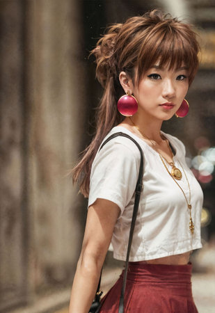 naughty young Thai asian woman with trending fashion style cloth , generative AI