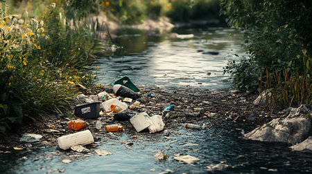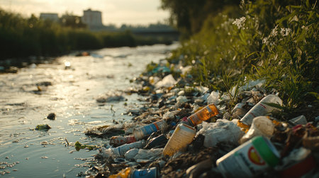 Daylight, plastic pollution in nature - impact of plastic waste on environment and wildlife