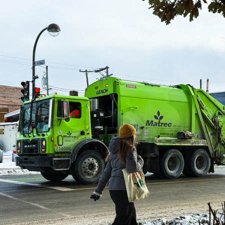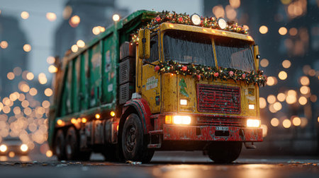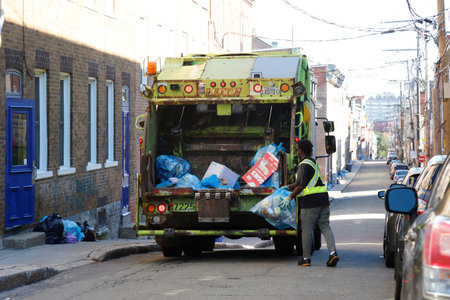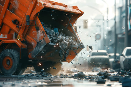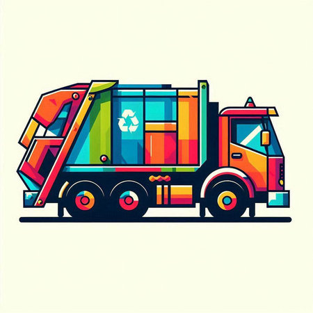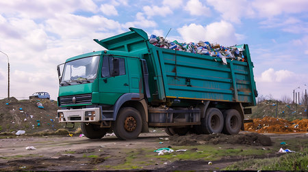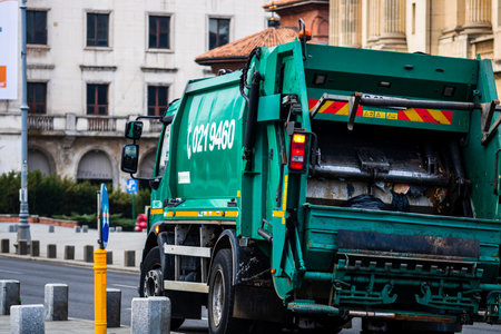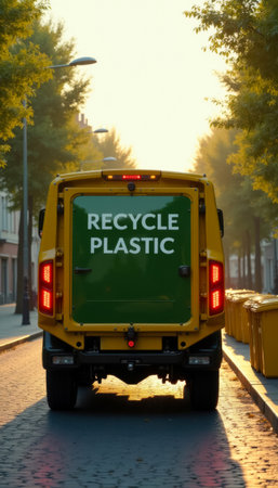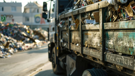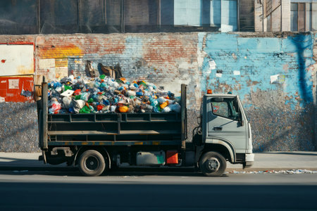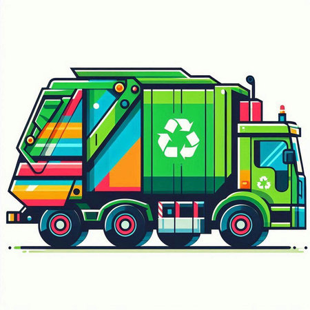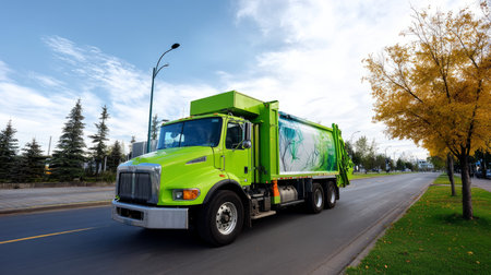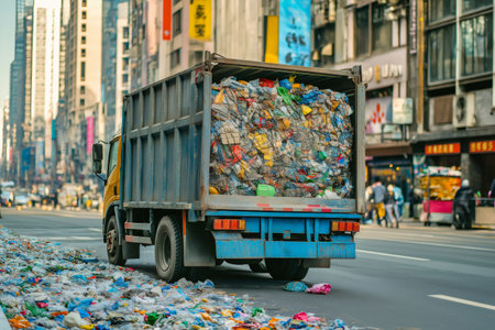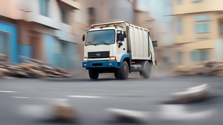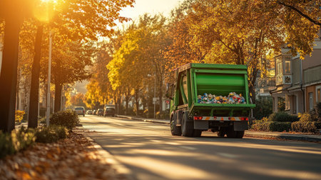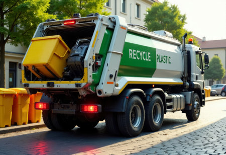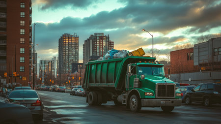 Garbage truck is transporting separated recyclable materials in a city, promoting environmental sustainability and waste responsible management