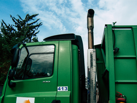 Tel Aviv Israel October 23, 2018 View of a green garbage truck parked in the streets of Tel Aviv in the afternoon