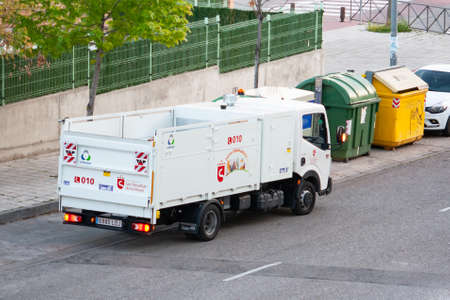 Seville Spain September 18, 2021 Garbage truck driving through the streets of Seville, an emblematic city and the capital of the region of Andalusia, in the south of Spain