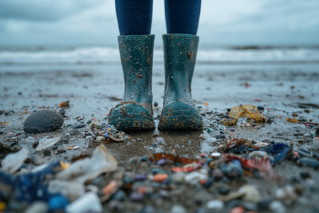 An AI generated illustration of a beach littered with debris and garbage