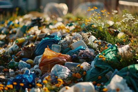 Plastic pollution overflowing in a landfill, representing environmental damage and waste management issues