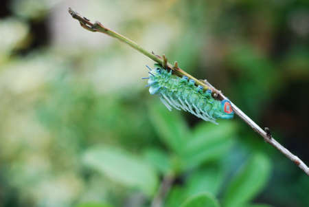 Leaf dwelling caterpillar in close up image