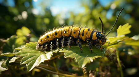 A caterpillar on a leaf in the sunlight, AI