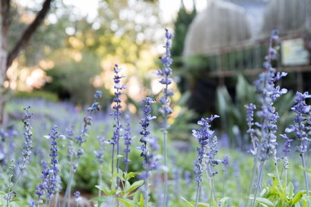 Blurred picture for purple flower in the garden, cinematic tone filter