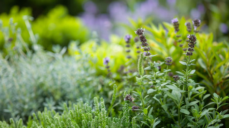 Beautiful green background of blooming sage, medicinal spicy herbs, folk alternative medicine