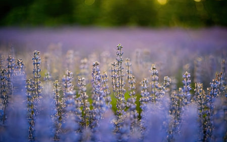 Lavender flowers flourish under the soft sunlight, creating a peaceful and vibrant scene.