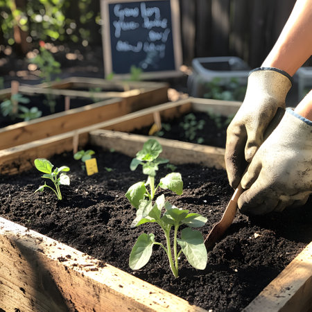 A dedicated gardener gently plants a seedling in nutrient-rich soil, showcasing the beauty of outdoor gardening and the importance of nurturing plants for sustainable living.