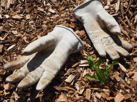 Dirty gardening gloves on the grass